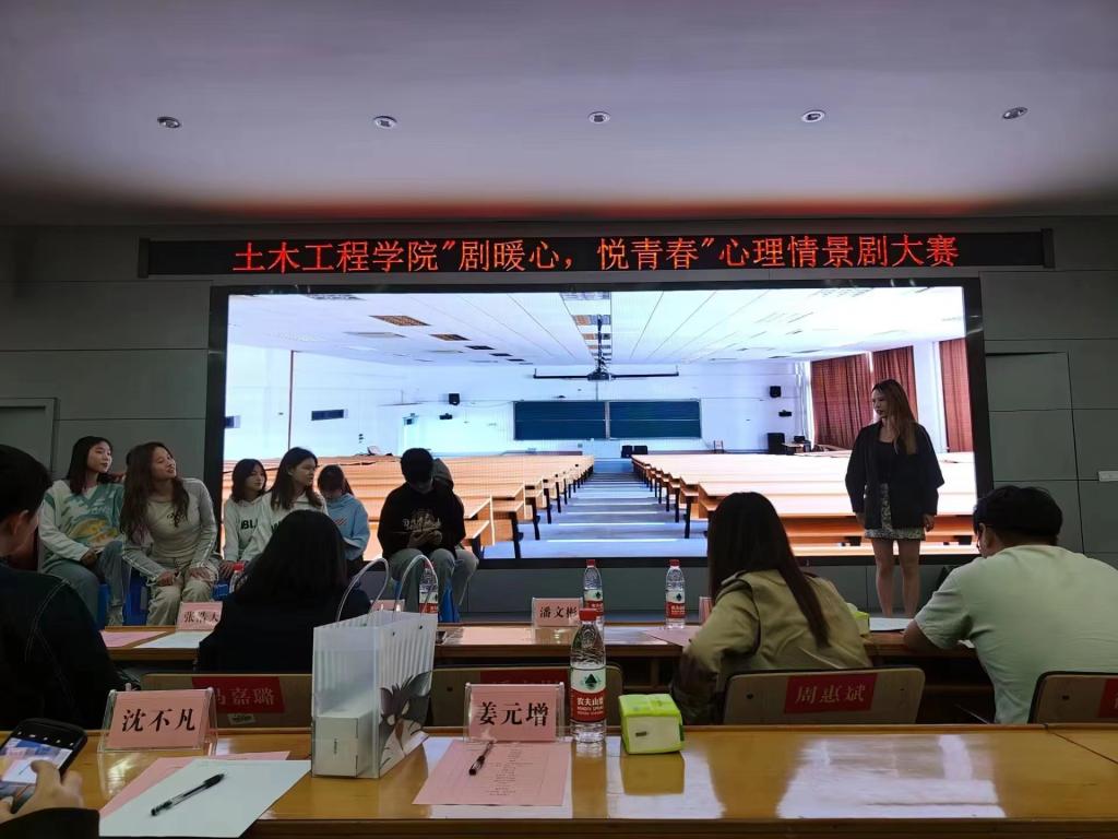 为了增强大学生关注自我及他人心理健康的意识,丰富大学生的课余文化生活。2023年11月5日,新葡的京集团35222vip“剧暖心,悦青春”心理情景剧大赛于校本部立言厅成功举办,本次大赛由新葡的京集团35222vip朋辈心理互助会组织,由土木院心理专干周惠斌老师,辅导员潘文彬老师、张浩天老师、马嘉璐老师、阿山木老师、徐昊达老师,心助会会长李嘉磊,副会长黄敏、李晓堃、沈不凡担任评委,由心助会干事李剑英、张润主持。